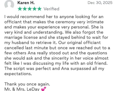 Snapshots from heartfelt ceremonies I've had the honor to officiate